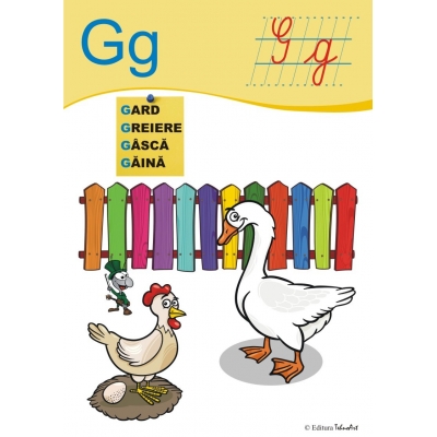 „Literele alfabetului” reprezintă un instrument auxiliar pentru preşcolari, şcolarii mici, în vederea însuşirii unor cunoştinţe referitoare la educarea limbajului. Planşele sunt ilustrate atractiv, concepute în acelaşi timp educativ, ajutându-i pe copii la învăţarea literelor mari şi mici de tipar cât şi a grupurilor de litere. Copiii pot fi îndrumaţi de către educatoare şi părinţi să parcurgă traseul grafic al literelor cu degetul arătător, ceea ce le înlesneşte efectuarea semnelor grafice cu instrumentul de scris pe foaia de caiet simplă sau cu reţea de sprijin pentru scrierea literelor de tipar şi implicit învăţarea acestora cu o mai mare uşurinţă. Aceste planşe contribuie la dezvoltarea şi îmbogăţirea vocabularului copiilor, stimulând intuiţia, atenţia şi memoria, Înlesnind calea spre comunicare între adult şi copil cât şi explorarea realităţii înconjurătoarea. În acelaşi timp, ţinând seama de curriculum pentru învăţământul preşcolar, pregătirea copiilor pentru şcoală este importantă şi se realizează atât ân grădiniţe cât şi în familie, iar realitatea cu care copilul vine în contact şi apare convertită şi în semnificaţii fixate în cuvinte cît şi în cod lingvistic mai puţin accesibil lui. Rolul adultului este esenţial şi astfel, jucându-se, copilul învaţă noţiuni noi care vin în sprijinul lui în vederea însuşirii alfabetului limbii române şi implicit trecerea spre citirea literelor şi grupurilor de litere. Recomand „Alfabetul pentru preşcolari” atât educatoarelor cât şi învăţătorilor care conduc clasa I cu specificarea îmbogăţirii conţinutului astfel încât cuvântul să conţină litera iniţială la început aşa cum sunt ilustrate aceste planşe, cât şi la mijlocul cuvântului sau la sfârşitul acestuia. FORMAT: 21 x 29,7 cm, 39 planşe color pe carton de 250g/mp. CONŢINE POSTER CU LITERELE.