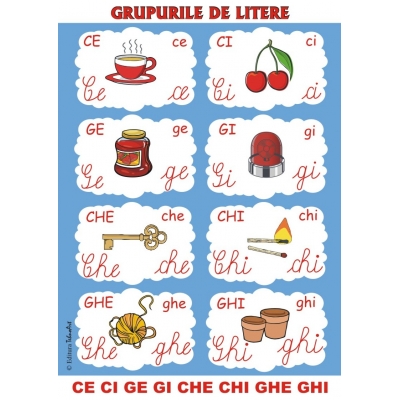 Planşe cu litere de tipar şi de mână mari şi mici, pe carton, format A4, cu poster.