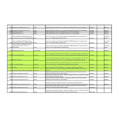 Lucrările prezentate spre avizare de către Editura Tehno-Art și avizate în sesiunea 09.10.2017-05.01.2018 se găsesc la pag. 68 a documentului CNEE RAPORTARE FINALĂ AUXILIARE 2017 respectiv în OM nr.3022 din 08.01.2018 pag. 78, nr.1181-1185, din care se prezintă doar pagina mai sus menționată. Pentru situația completă a avizărilor vizitați site-ul www.rocnee.eu, sau mai jos la secțiunea Descarcă.