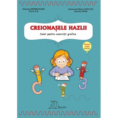 Caietul de lucru pentru preșcolarii din grupa mare Creionașele hazlii, elaborată de un grup de educatoare, dedicate profesiei și copilului preșcolar, ilustrează din plin beneficiile menționate anterior. În plus, materialul prezintă o machetă prietenoasă, adaptată nevoilor și intereselor copiilor preșcolari și o paletă interesantă de mijloace prin care îi putem apropia pe preșcolari de elementele de citit-scris.