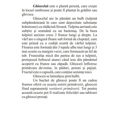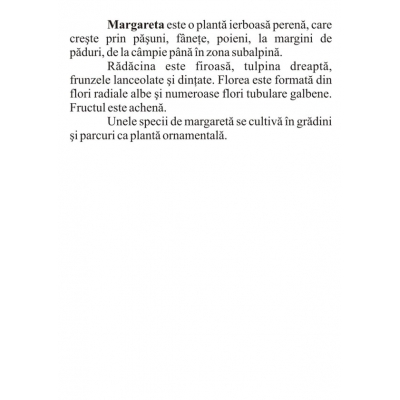 Setul de jetoane conţine 28 de imagini cu flori de grădină şi de câmp, şi poate fi utilizat pentru verificarea şi sistematizarea cunoştinţelor copiilor despre flori, în funcţie de caracteristicile acestora sau anotimpuri. FORMAT: 10 x 15 cm, 28 jetoane color, carton 250 g/mp.