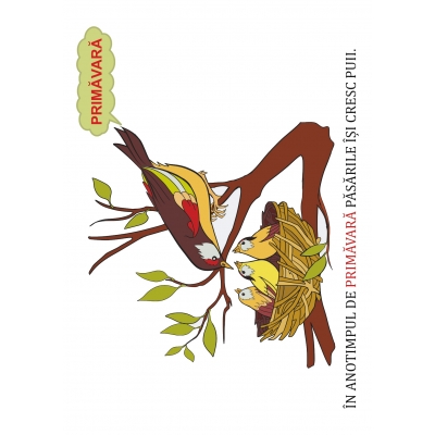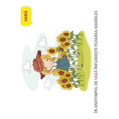 Mapa conţine 42 de jetoane: 26 de jetoane pentru anotimpul de primăvară și 16 de jetoane pentru anotimpul de vară. Cu aceste jetoane se organizează jocuri de grupare în funcție de o imagine și formularea unor propoziții în funcție de cuvintele date (substantive, adjective, verbe) și de imaginile de pe jetoane.