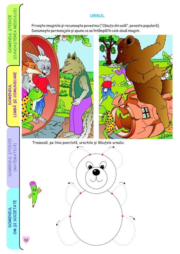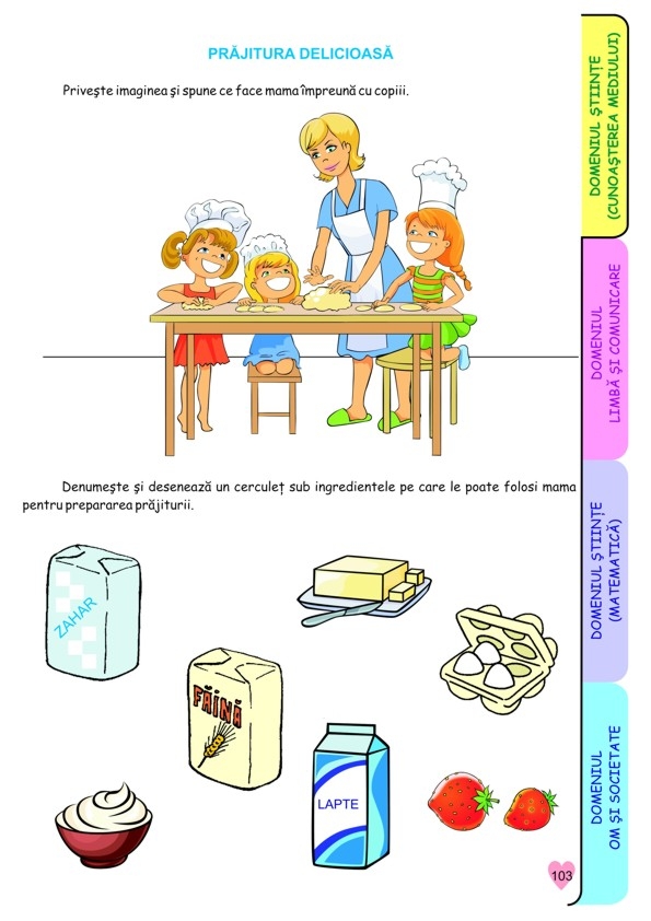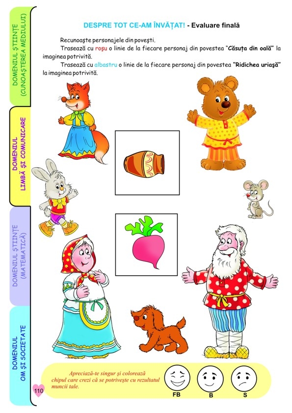 4 CAIETE INTR-UNUL SINGUR. Caietul conţine mai multe subteme având 3 sau 4 fişe pentru domeniile experienţiale: Ştiinţă - Cunoaşterea mediului; Limbă şi comunicare; Ştiinţă - Matematică; Om şi societate - Activităţi practice/Educaţie pentru societate.