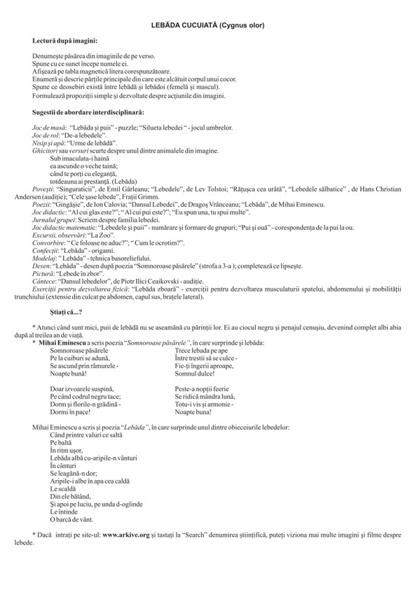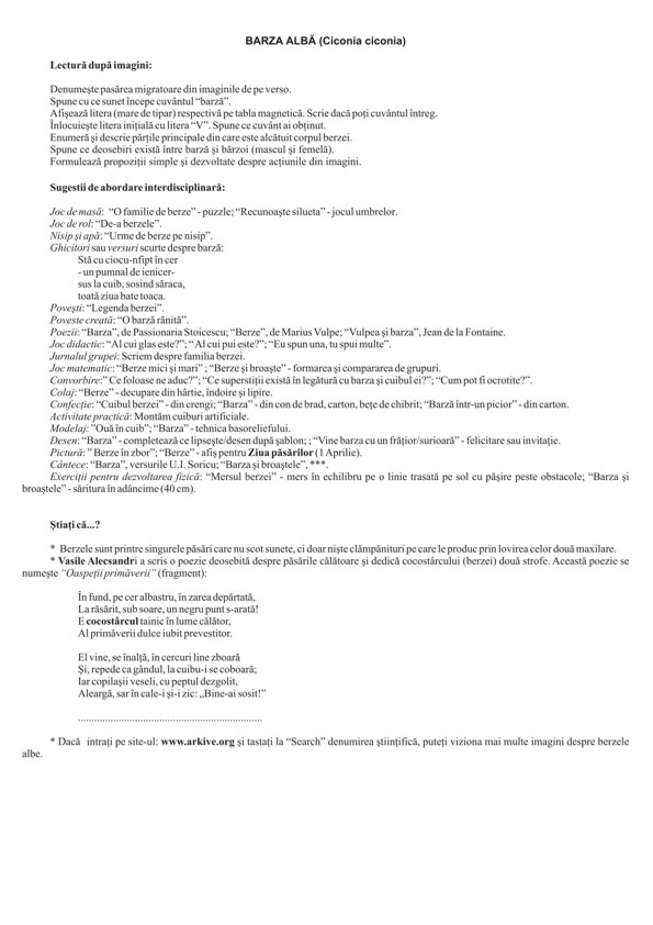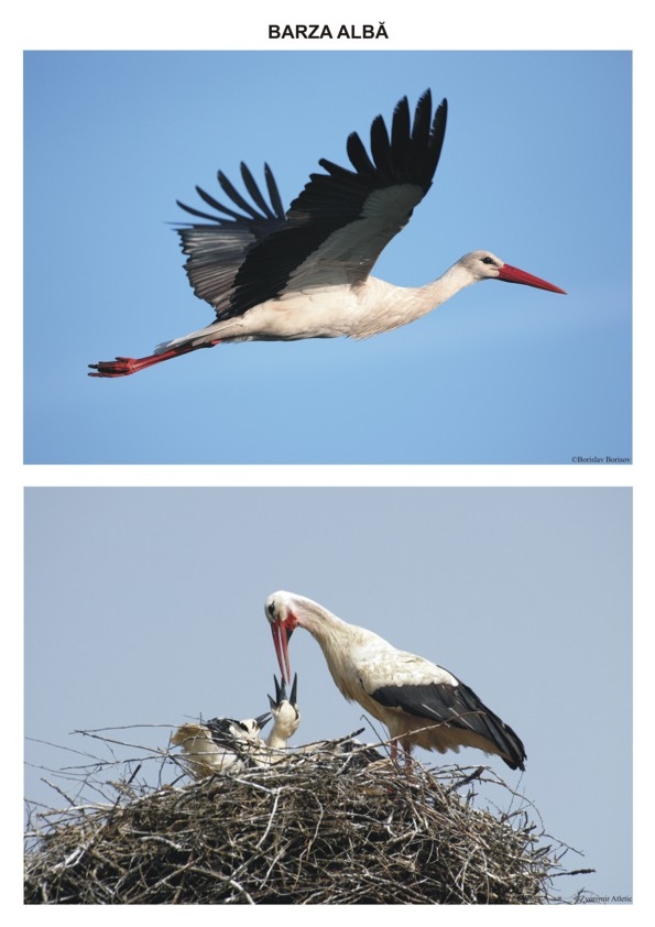 Setul PĂSĂRI CĂLĂTOARE conţine planşele: barza albă - 2 planşe; cocorul mare - 2 planşe; cucul - 1 planşă; lebăda cucuiată - 2 planşe; pelicanul comun - 2 planşe; privighetoarea de zăvoi - 1 planşă; pupăza - 1 planşă; rândunica - 2 planşe. Fotografiile au fost astfel alese încât să surprindă cât mai multe aspecte din viaţa păsărilor călătoare (păsări-pereche, înmulţirea, hrana, mediul de viaţă etc.). FORMAT: 29,7x42 cm, 13 planşe color legate în banderolă, text verso, carton 250 g/mp.