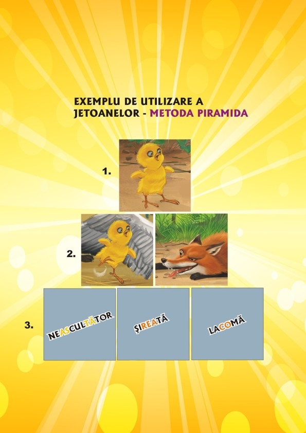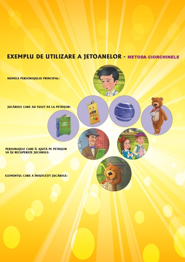 CONŢINE: cartea cu texte literare si sugestii de jocuri/activitati în care sunt folosite metode interactive de grup, pentru învăţarea şi fixarea poveştilor, precum şi jetoane pentru realizarea jocurilor sugerate.