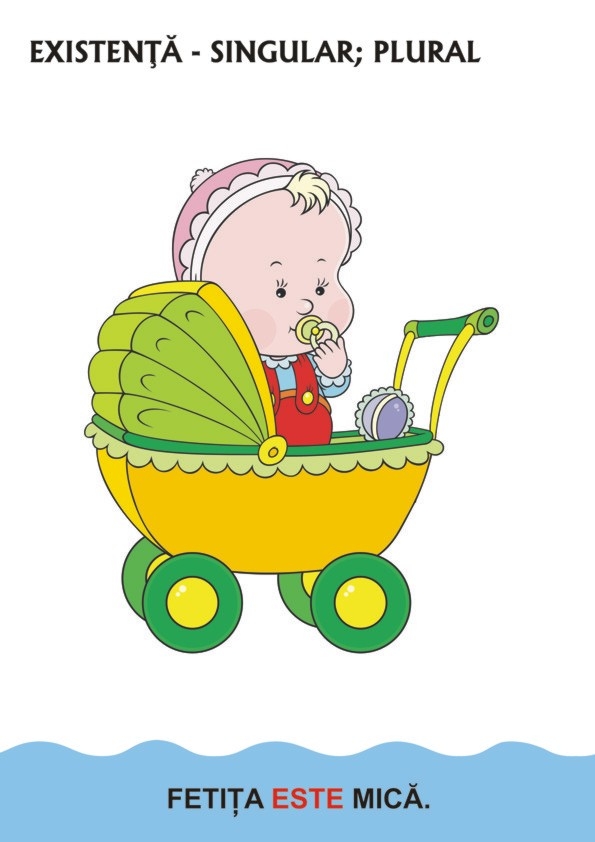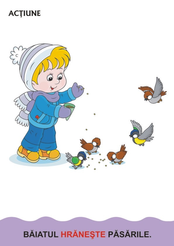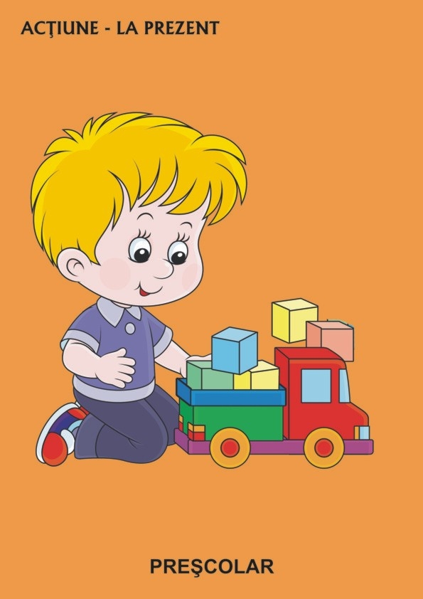 Setul „Ce face copilul?” conţine 48 de jetoane cu imagini, cu ajutorul cărora copiii vor folosi verbele în propoziţii şi vor realiza corect acordul predicatului cu subiectul.
