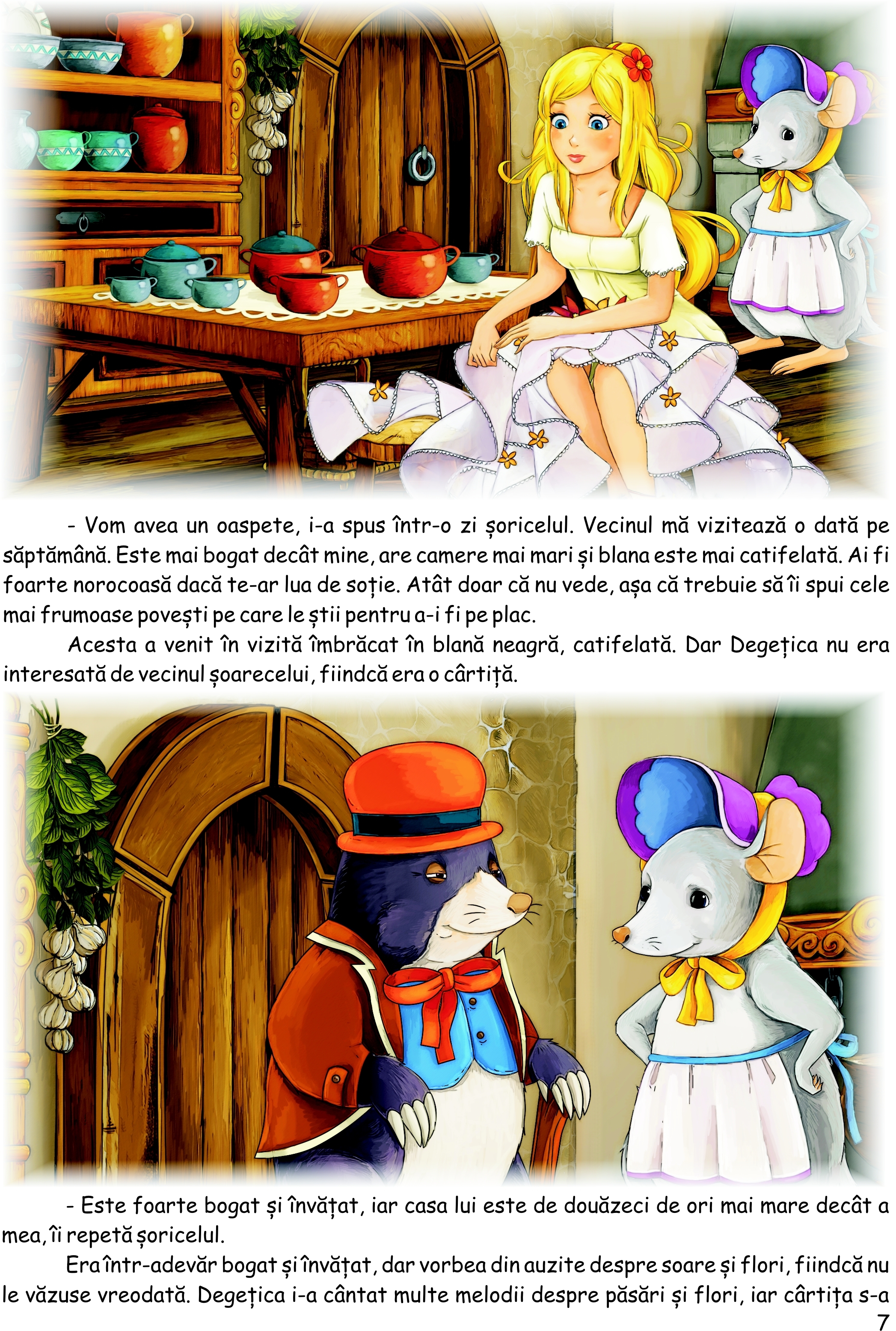Degețica este o prințesă a florilor, mică cât un degețel, delicată și grațioasă. Ea s-a întâlnit cu un prinț mic, gingaș ca ea, numit Craiul tuturor florilor. El a fost uimit de frumusețea ei și a cerut-o de soție. Autorul ne povestește călătoria Degețicăi, plină cu aventuri, de la naștere până la întâlnirea cu tânărul prinț.
