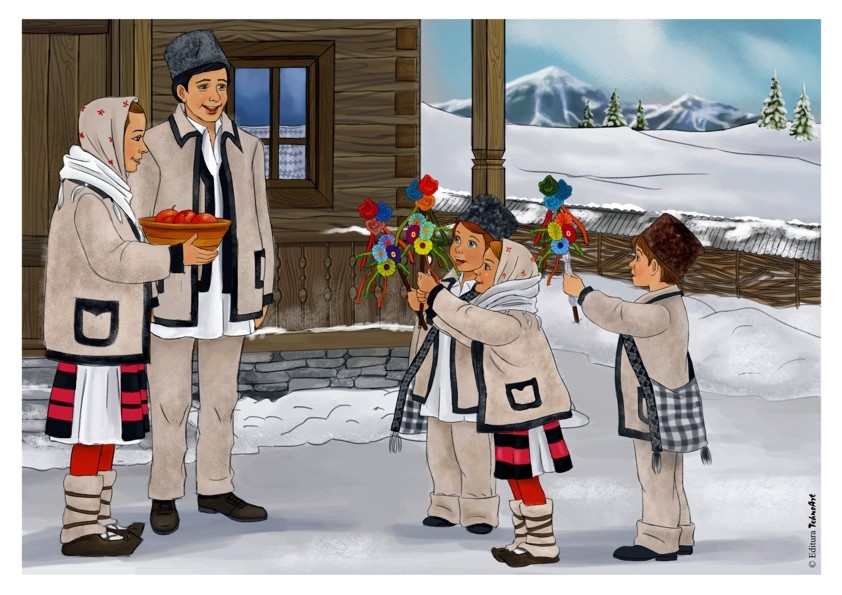 Mapa conţine următoarele planşe: NINSOARE, CHICIURĂ, IARNA, CRĂCIUNUL, CU STEAUA, CU SORCOVA, JOCURI ȘI SPORTURI DE IARNĂ, ANIMALELE PĂDURII