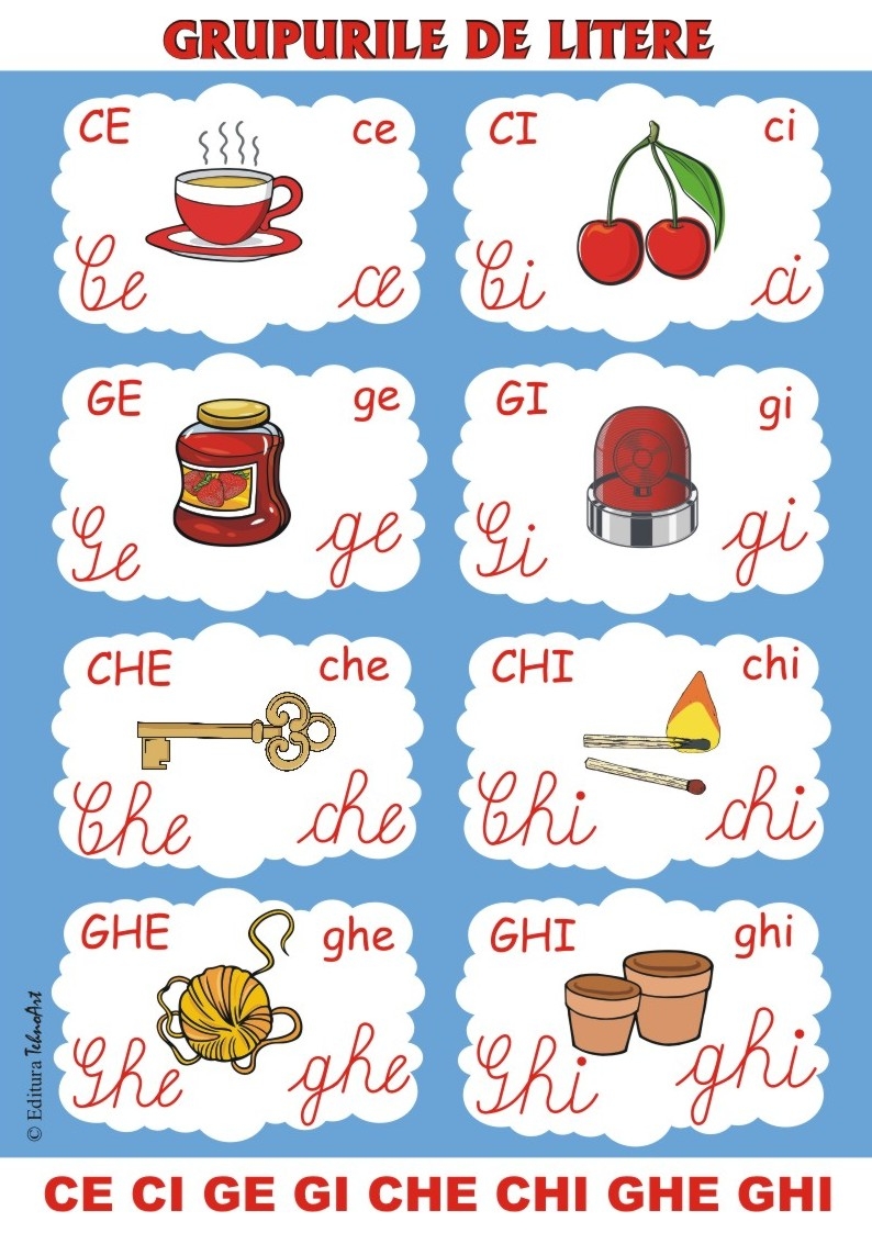 Planşe cu litere de tipar şi de mână mari şi mici, pe carton, format A4, cu poster.