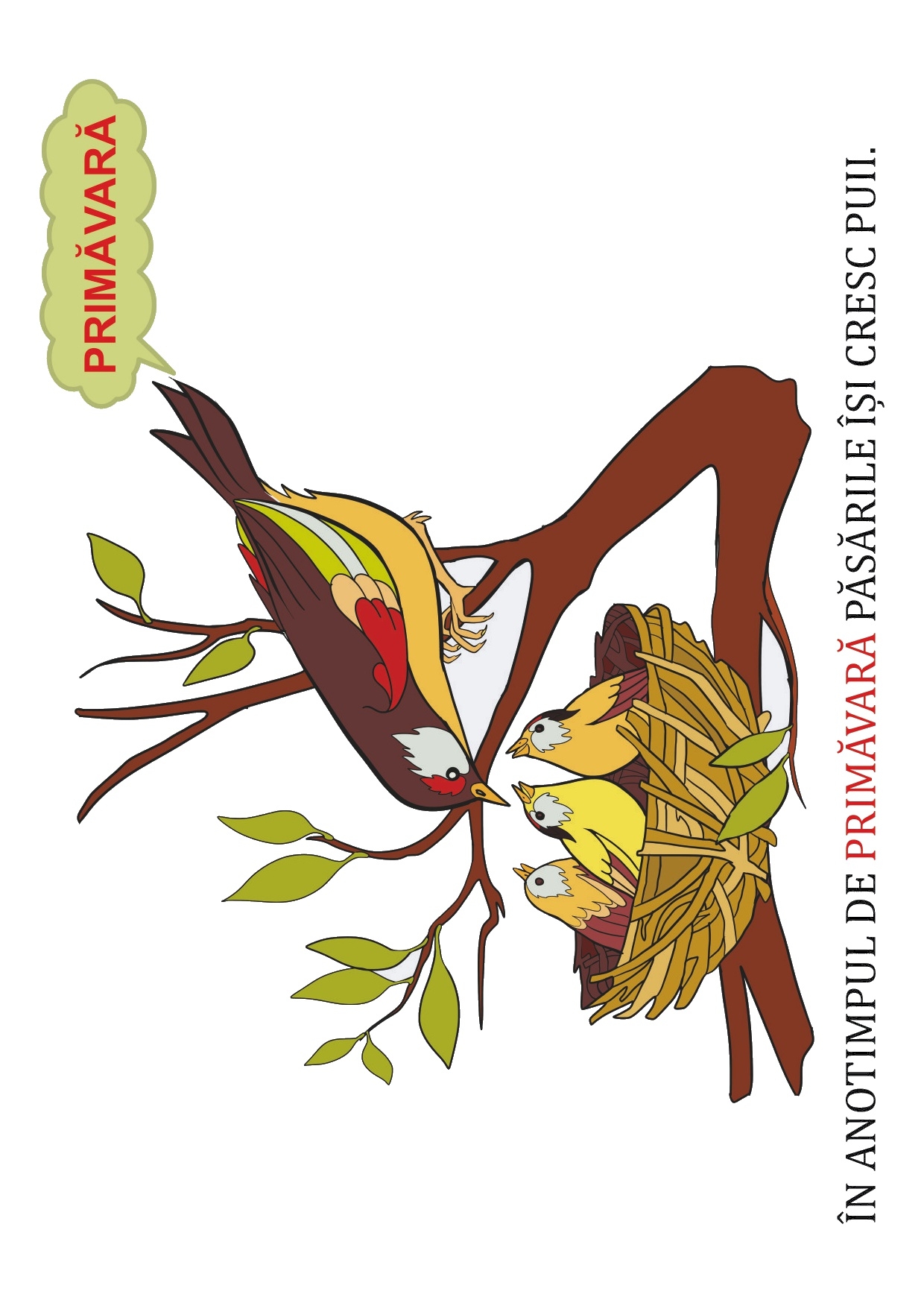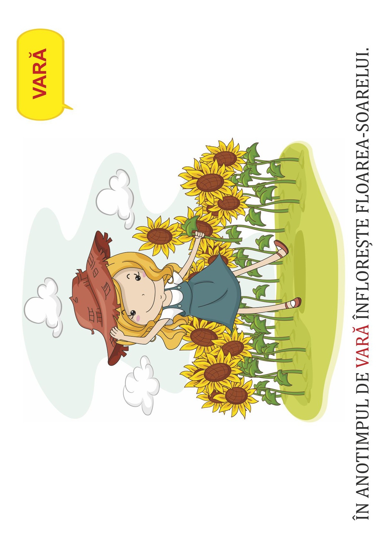 Mapa conţine 42 de jetoane: 26 de jetoane pentru anotimpul de primăvară și 16 de jetoane pentru anotimpul de vară. Cu aceste jetoane se organizează jocuri de grupare în funcție de o imagine și formularea unor propoziții în funcție de cuvintele date (substantive, adjective, verbe) și de imaginile de pe jetoane.