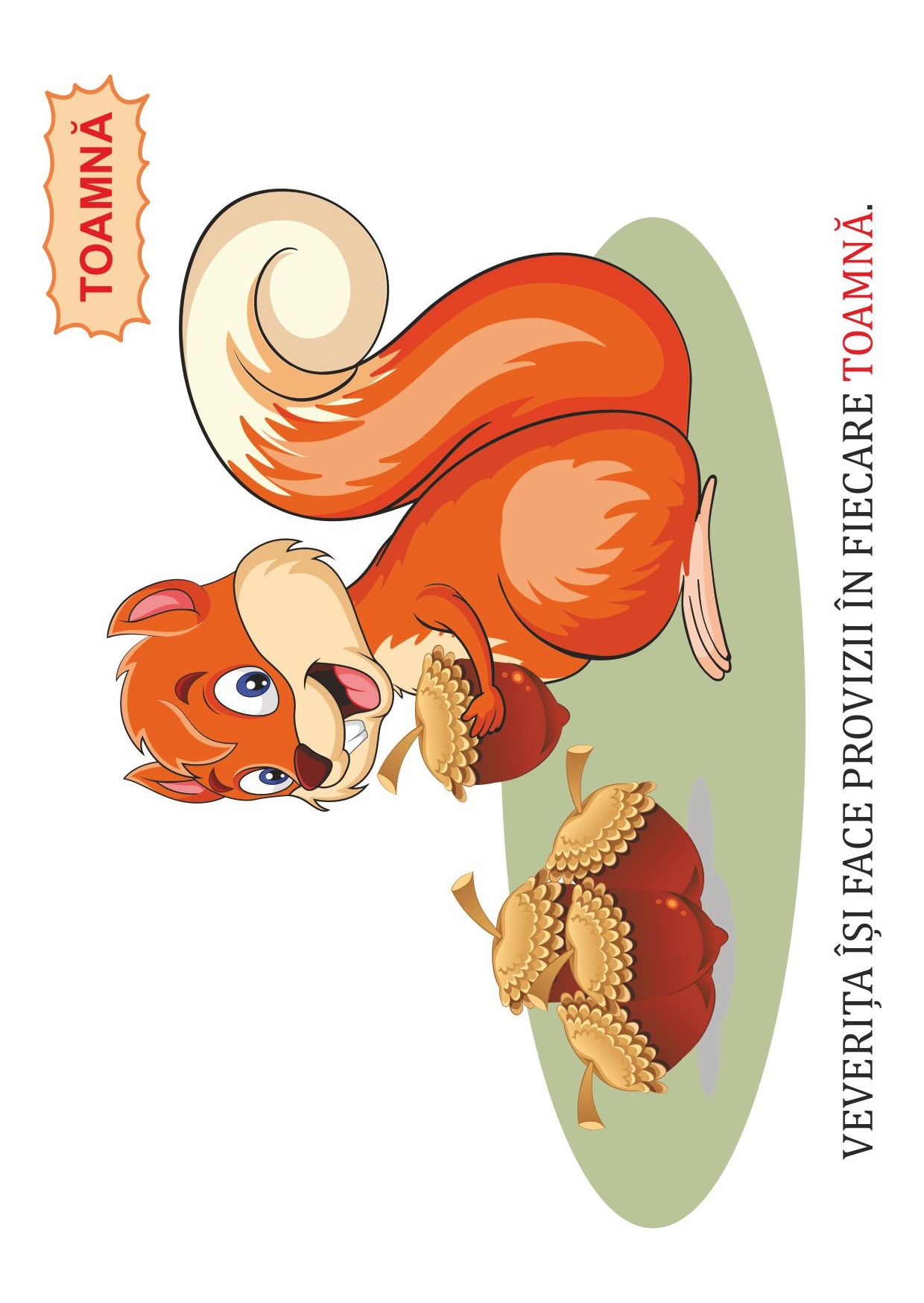 Mapa conţine 48 de jetoane: 20 de jetoane pentru anotimpul de toamnă și 28 de jetoane pentru anotimpul de iarnă. Cu aceste jetoane se organizează jocuri de grupare în funcție de o imagine și formularea unor propoziții în funcție de cuvintele date (substantive, adjective, verbe) și de imaginile de pe jetoane.