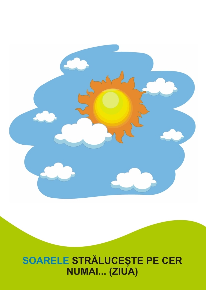 Mapa conţine 54 de jetoane: 20 de jetoane pentru gruparea imaginilor după zi și după noapte; 22 de jetoane pentru asocierea imaginilor în pereche și completarea unor propoziții; 12 jetoane pentru ordonarea momentelor unei zile și ordonarea zilelor săptămânii în ordine cronologică.