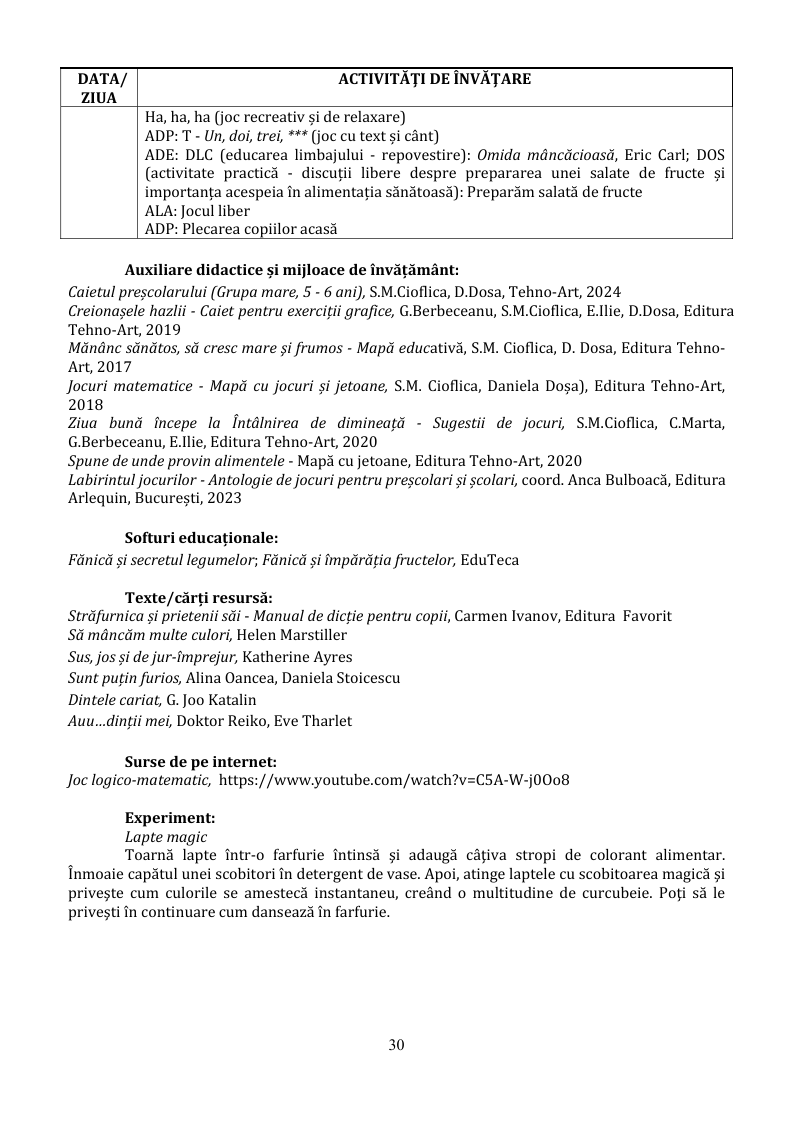 PLANIFICAREA ACTIVITĂȚILOR DIN GRĂDINIȚĂ - GHID ORIENTATIV - GRUPA MARE