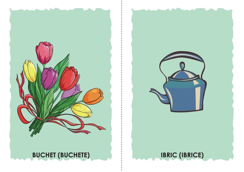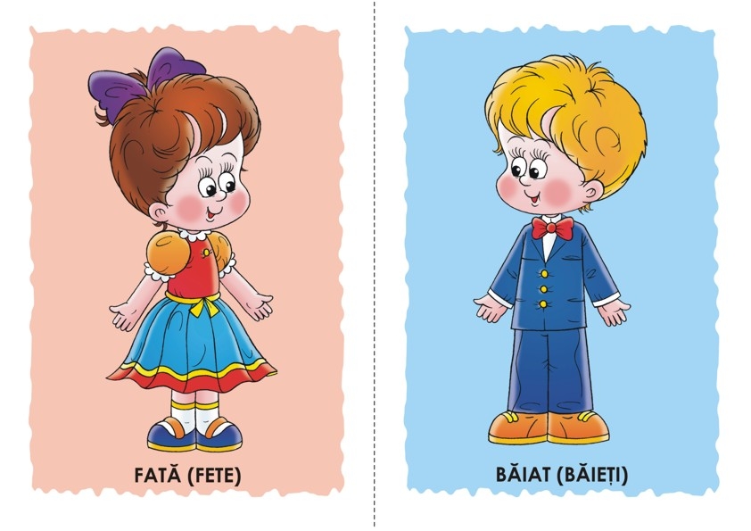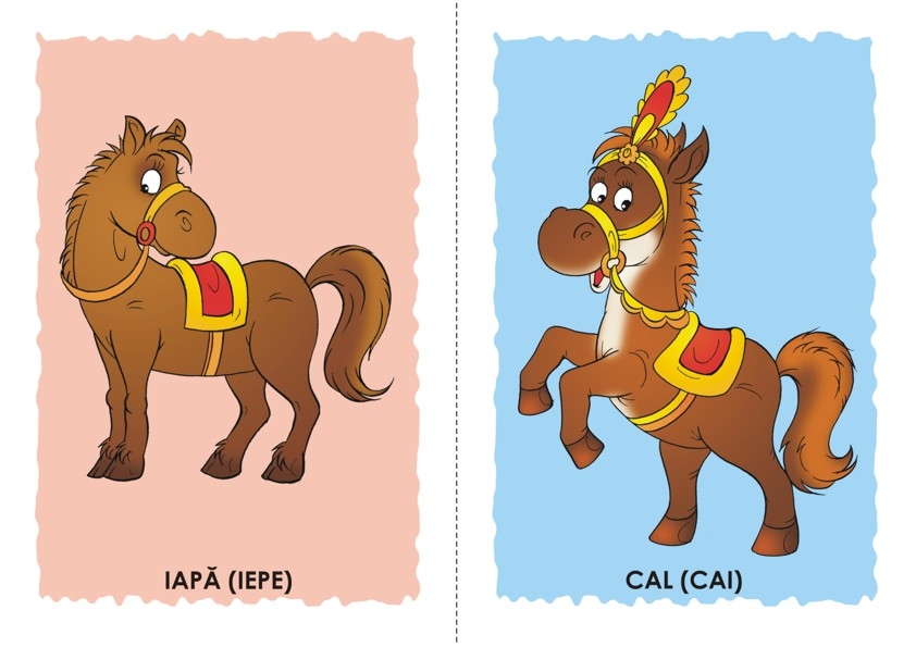 Conţine jetoane cu ajutorul cărora copiii pot forma perechi între imagini (feminin-masculin: fată-băiat, oaie-berbec etc.). Se observă că unele imagini nu au pereche, ceea ce înseamnă că denumirea lor are o singură formă (girafă, furnică, elefant, fluture).