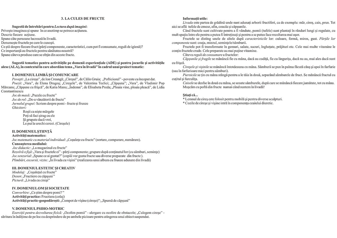 Conţine următoarele planşe: PLOAIA DE VARĂ, TRANDAFIRI CU ROUĂ, LA CULES DE FRUCTE, PE OGOARE, ÎN PARC, LA MUNTE , LA MARE, ÎN DELTĂ.