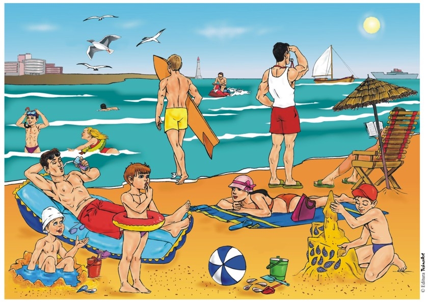 Setul VARA ŞI FRUMUSEŢILE EI conţine următoarele planşe: Ploaia de vară (ploaia, fulgerul şi tunetul), Trandafiri cu rouă, La cules de fructe (cireşe, căpşuni, zmeură), Pe ogoare (grâu, floarea soarelui, plante medicinale), În parc (jocurile copiilor, curcubeul), La munte (cabana, pârâul, capra neagră, floarea de colţ), La mare (jocurile copiilor, plimbare cu vaporul/barca), În deltă (animale, plante).