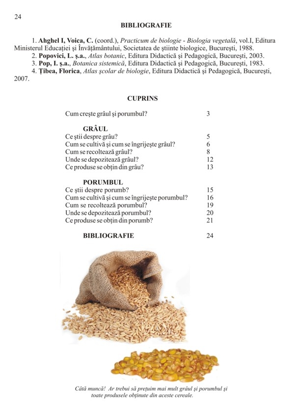 Lucrarea vine în sprijinul cadrelor didactice şi al copiilor, putând fi utilizată pentru observări. Astfel, se poate urmări drumul pe care-l parcurg câteva alimente importante de pe câmp pe masa noastră.