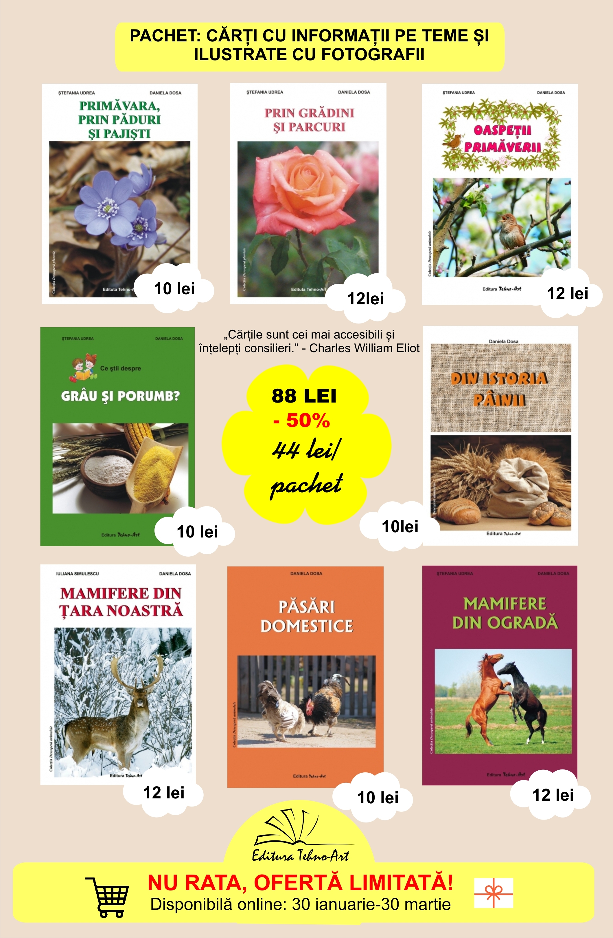 PACHET CĂRȚI CU INFORMAȚII PE TEME ȘI ILUSTRATE CU FOTOGRAFII